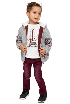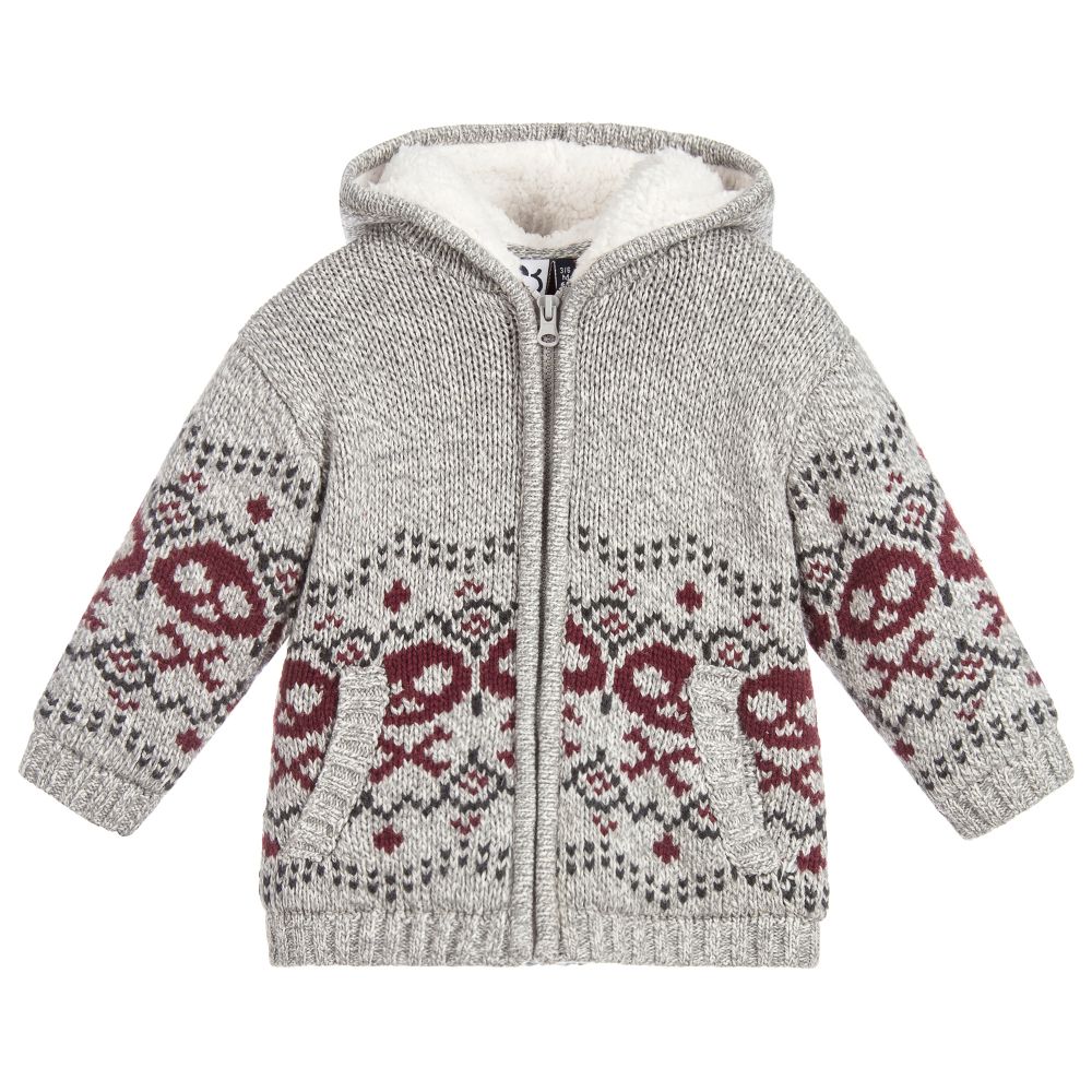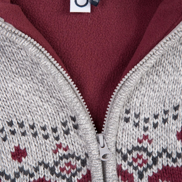 Ζακέτα πλεκτή με εσωτερική fleece επένδυση και με κουκούλα που έχει λευκή γούνινη επένδυση